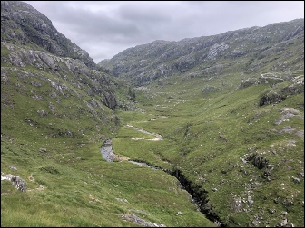 There is a high lochan for any one brave enough for a wild swim. The return is via the same route and hopefully with time to visit the most remote pub in the UK The Old Forge.